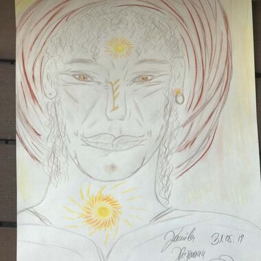 Welche Geistführerin oder Geistführer sich zeichnen lassen möchte, oder sogar der Maine Guide, der oder die Hauptgeistführerin, weiß ich nicht im Vorfeld. Es zeigt sich immer der- oder diejenige, deren Botschaft für den Sitter gerade aus Sicht des geistigen Teams als wichtigste Botschaft und Unterstützung erscheint.