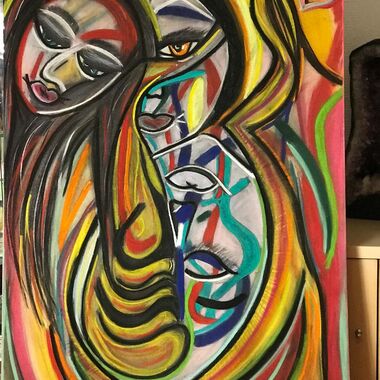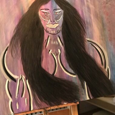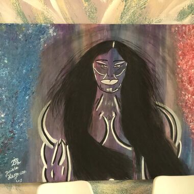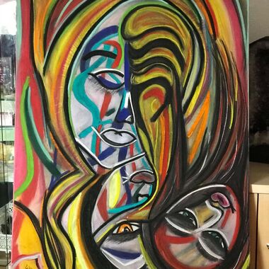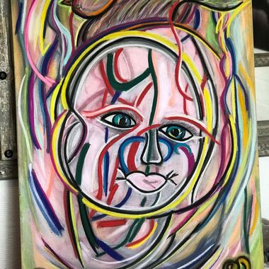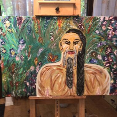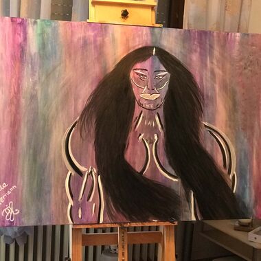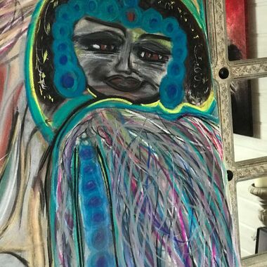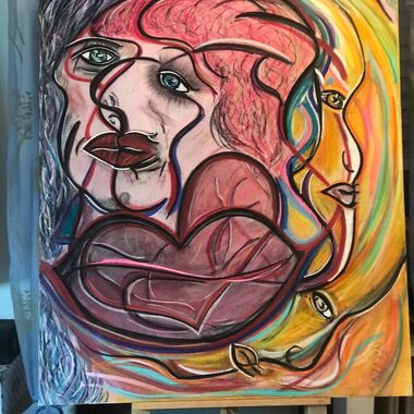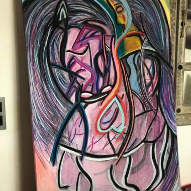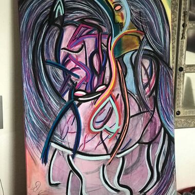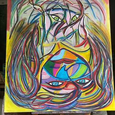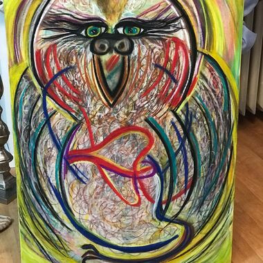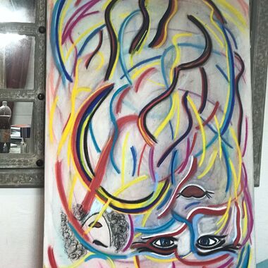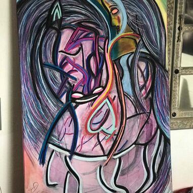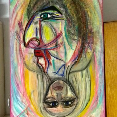 Was auf der Leinwand entstehen wird, ist immer offen und liegt nicht in meiner Entscheidung. Manchmal entstehen Geistführerporträts, oder Krafttiere, in der Regel haben diese Gemälde sehr tiefe Bedeutungen für den Sitter und bedeutsame, sehr private Durchsagen. Oft entstehen Gemälde, die man aus zwei Perspektiven betrachten und auch wechselnd aufhängen kann.